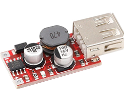 XL2001を搭載した5V固定電圧出力DC-DC昇圧モジュール、入力電圧範囲:6〜36V、出力電圧:5V、出力電流:MAX 3A(推奨:<2A)、変換効率:MAX 96%、動作周波数:150KHz、出力接続:TYPE-AメスUSBコネクタ、基板寸法:37x16mm、表記価格:1