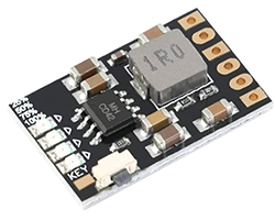CD42 を搭載した充放電基板、入力電圧範囲:4.5〜6.5V、充電電流:0〜2.1A、充電終了電圧:4.2V、出力電圧:5V、出力電流:MAX 2.1A、変換効率:MAX 96%、基板寸法:25x16mm、表記価格:1