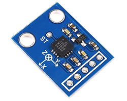 ADXL335を搭載した三軸加速度センサ、I2C、動作電圧範囲:1.98〜3.6V、基板寸法:21x16mm、表記価格:1