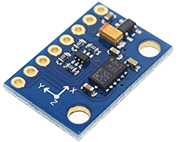 LSM303DLHCを搭載した三軸加速度センサ、I2C、動作電圧範囲:3〜5V、基板寸法:20.5x14.5mm、表記価格:1