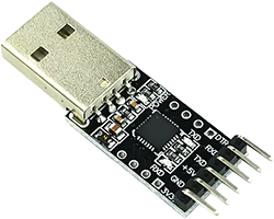 CP2102を搭載したUSBシリアルコンバータ、USB側:TYPE-Aオスコネクタ、シリアル側:TTLレベル、2.54mmピッチ5Pピンヘッダ、ピンアサイン:DTR、TXD、RXD、5v、GND、3v3、基板寸法:25.7x15mm、表記価格:1
