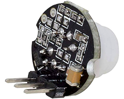 PIRセンサモジュール、センサ自身からLEDなどの光を発光するのではなく、周囲と温度差のある人(物)が動く際におこる赤外線の変化量を検出します。動きの有無を1ビットのON/OFF信号として出力、出力信号レベル:highレベル=3.3V、デフォルト遅延時間:2.5秒 、連続動作モード、動作電圧範囲:3.3〜15V、静止電流:<20uA、検知範囲: 受光角 100° 、距離0〜5m 、基板寸法:φ16.5 mm、表記価格:1