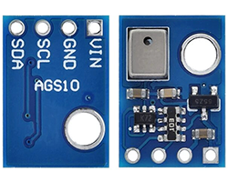 空気質センサモジュール、濃度レンジ:0〜99999ppb、信号インターフェース:I2C、センサの電源を入れた後50秒ほどのウォームアップ時間が必要です。センサの発熱は正常な現象です。動作電源:3〜6V、基板寸法:15 x 10.6 mm、データシート、表記価格:1