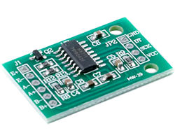 rduinoマイコンなどに接続する事で、ロードセルの抵抗値の変化を測定し、重り等で校正をすることで、重さを量ることが出来ます。クロック(PD_SCK)とデータ(DOUT)の2信号で、ArduinoなどのGPIOで通信します。GitHub にHX711ライブラリがあり、ソフト制作の参考になります。ロードセルとはVDD・GND・INA+・INA-の4線で接続します。動作電圧:2.6〜5.5V、出力データレート:10SPS、ADコンバータ分解能:24ビット、基板寸法:34 x 21 mm、表記価格:1