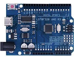 LGT8F328Pを搭載したアルデュイーノ互換機、USBシリアルl変換に純正品のATmega16U2の代わりにCH340Gが使われています、USB TYPE-Cメスコネクタ、表記価格:1