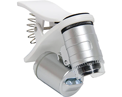 マイクロスコープ、スマートフォンなどのカメラレンズ部分にクリップで装着することで、最大60倍率で対象を観察、撮影できるマイクロスコープだ。昆虫や植物の自由研究や、肌の健康チェックといった幅広い用途に活用できます。本体に搭載するLEDライトを点灯することで、薄暗いところでも映像を確認できる。つまみを回転させることで、UVライトに切り替えることもできます。動作電源:LR1130ボタン電池3本(付属なし)、外形寸法:67x62x22mm、表記価格:1