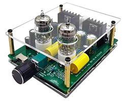 実装済み真空管プリアンプボード、回路構成:5654 + クラスA、適合真空管:、電圧ゲイン5倍、入力・出力:RCAジャック、動作電源:12〜15VDC、>1.0A、電源の接続:DCジャックφ2.5/5.5、基板寸法:106 x 80 mm、表記価格:1