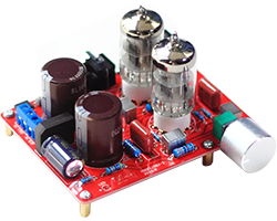 実装済み真空管プリアンプボード、回路構成:ブリッジダイオード整流+6N3、適合真空管:6N3及び互換品、入力・出力:RCAジャック、動作電源:6〜12VAC、50〜60VAC、電源の接続:5.08mmピッチ2P+2Pターミナルブロック、基板寸法:103 x 80 mm、表記価格:1