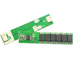 リチウムイオン電池用保護基板、構成素子:DW01 + 8205A、6セル直列、過充電検出電圧(VCU):4.25、過充電回復電圧(VCL):4.23V、過放電検出電圧(VDL):2.54V、過電流設定値:12A、最大基板寸法:35x7.24mm、表記価格:1