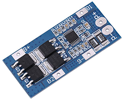 リチウムイオン電池用保護基板、3セル直列、過充電検出電圧(VCU):4.35V、過充電回復電圧(VCL):4.25V、過放電検出電圧(VDL):2.3V、過放電回復電圧(VDL):3.0V、過電流設定値:20A、基板寸法:51x23mm、表記価格:1