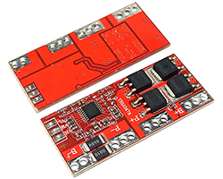 リチウムイオン電池用保護基板、4セル直列、過充電検出電圧(VCU):4.25V、過充電回復電圧(VCL):4.15V、過放電検出電圧(VDL):2.5V、過放電回復電圧(VDL):3.0V、過電流設定値:30A、基板寸法:50x22mm、表記価格:1