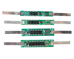 リチウムイオン電池用保護基板、2セル直列、充電電圧:3.2V、過充電検出電圧(VCU):3.7V、過充電回復電圧(VCL):3.6V、過放電検出電圧(VDL):2.1V、過放電回復電圧(VDL):2.6V、過電流設定値:4〜9A、基板寸法:45x10mm、全長:110mm、表記価格:1