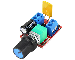 PWMモジュール、DCモータ速度コントローラ、固定周波数:10KHz、デューティサイクル調整範囲:1〜100%、動作電圧範囲:3〜15Vまたは5〜35V、最大出力電流:2A、基板寸法:30x24mm、表記価格:1