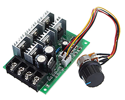 PWMモジュール、DCモータ速度コントローラ、固定周波数:25KHz、デューティサイクル調整範囲:0〜100%、動作電圧範囲:9〜55V、最大出力電流:40A、基板寸法:83x56mm、表記価格:1