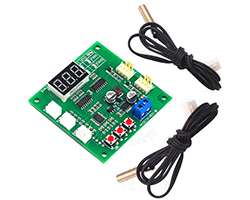 を搭載したPWMモジュール、DCモータコントローラ、デューティサイクル調整範囲:10%〜100%、温度制御機能付き、NTC温度センサ、加速温度設定範囲:5℃〜94℃、フル回転温度設定範囲:10〜99℃、回転速度表示:10〜9990:999、警報回転速度:375rpm、動作電圧範囲:8〜60V、出力電圧:12〜24V、基板寸法:65x65mm、表記価格:1