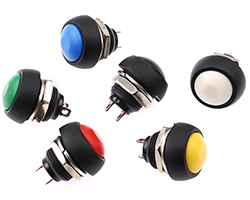 押しボタンスイッチ、操作部:φ11.8mm、パネル取付、1回路1接点、モーメンタリ、定格表記:0.3A 60VDC、1.5A 250VAC、表記価格:1