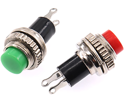 押しボタンスイッチ、ボタンを押している間だけON状態になるモーメンタリ方式、操作部:φ7.8mm、パネル取付、1回路1接点、定格表記:0.5A 125V、表記価格:1