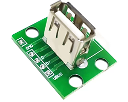 USB変換モジュール、TYPE-AメスUSBコネクタ、変換先:2.54mmピッチ4P、基板寸法:25 x 20.5 mm、表記価格:1
