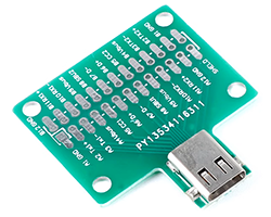 USB変換モジュール、TYPE-CメスUSBコネクタ、変換先:2.54mmピッチ2列x13Pスルーホール、基板寸法:38 x 41 mm、表記価格:1