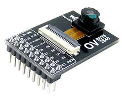 CMOSカメラモジュール、センサ:1/4インチ、200万画素、動作電源:3.3V、基板寸法:35.7x23.9mm、表記価格:1