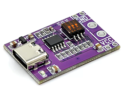 USB-PD対応電源から設定した電圧を取り出すことができるモジュール、USB-PDトリガーやUSBデコイ、シンクコントローラと呼ばれるものと同じです。電圧出力:固定モード、DIPスイッチで設定、出力可能な電圧:5V/9V/12V/15V/20V、入力:TYPE-Cメスコネクタ、出力:5.08mmピッチ2Pスルーホール、基板寸法:30 x 20 mm、表記価格:1