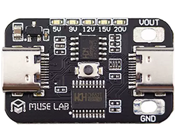 USB-PD対応電源から設定した電圧を取り出すことができるモジュール、USB-PDトリガーやUSBデコイ、シンクコントローラと呼ばれるものと同じです。CH224K + CH552T、電圧出力:固定モード、自動切り替え、出力可能な電圧:5V/9V/12V/15/20V、入力・出力:TYPE-Cメスコネクタ、出力電圧指示LEDあり、基板寸法: mm、表記価格:1
