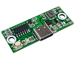 USB-PD対応電源から設定した電圧を取り出すことができるモジュール、USB-PDトリガーやUSBデコイ、シンクコントローラと呼ばれるものと同じです。QC2.0/QC3.0専用、電圧出力:固定モード、タクトスイッチで設定、出力可能な電圧:5V/9V/12V、出力電流:< 3A、入力:TYPE-Cメスコネクタ、出力:基板スルーホール、基板寸法:40 x 15 mm、表記価格:1