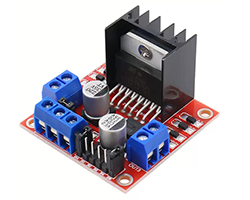 L298Nを搭載したDCモータドライバーモジュール、2ch出力、入力信号レベル:1.8〜7V、動作電圧範囲:5〜12V、最大出力電流:1.5A、基板寸法:55 x 49 mm、表記価格:1