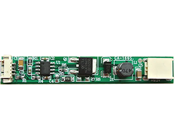 定電流出力LEDドライバー、LEDバックライト点灯用に特化した仕様、入力電圧(VCC):9〜28V、推奨:12V、ENA制御電圧:3.3V/5V、入力接続:1.25mmピッチ4Pコネクタ、ピンアサイン:VCC/ENA/V-ADJ/GND、出力:9.6V、定電流、最大出力電流(CH1+CH2):、接続:JST社SM02B-BHSS-1-TB互換コネクタ(x2)、対応LEDバックライト:LED-BL、基板寸法:68 x 10 mm、本体のみ、表記価格:1