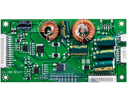 定電流出力LEDドライバー、26〜55インチ液晶バックライト点灯用に特化した仕様、入力電圧:19〜45V、ON/OFF制御電圧:2.5〜5V@POWER ON、入力接続:2.0mmピッチ14Pコネクタ、ピンアサイン:VCC/VCC/VCC/VCC/VCC/GND/GND/GND/GND/GND/NC/ON-OFF/NC/V-ADJ、輝度調整電圧(V-ADJ):2.5〜5V、出力:60〜 165V、定電流、出力電流:10〜1000mA、基板ジャンプバッドで設定できます、出力接続:2.0mmピッチ6P + 2P コネクタ、基板寸法:119 x 60 mm、本体のみ、表記価格:1