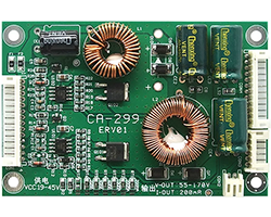 定電流出力LEDドライバー、26〜55インチ液晶バックライト点灯用に特化した仕様、入力電圧:19〜45V、ON/OFF制御電圧:2.5〜12V@POWER ON、入力接続:2.0mmピッチ14Pコネクタ、ピンアサイン:VCC/VCC/VCC/VCC/VCC/GND/GND/GND/GND/GND/NC/ON-OFF/PWM/V-ADJ、輝度調整電圧(V-ADJ):2.5〜5V、出力:55〜 170V、定電流、出力電流:20〜620mA、基板ジャンプバッドで設定できます、出力接続:2.0mmピッチ12P + 6P コネクタ、基板寸法:85 x 58 mm、本体のみ、表記価格:1