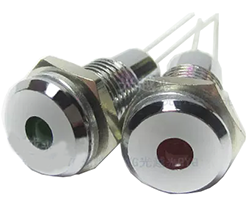 金属LEDソケット、フラット面、適合LED:砲弾型LED φ5mm、取り付け穴:φ8mm、外形寸法:φ11x17.9mm、ご注意:LED付属なし、表記価格:1