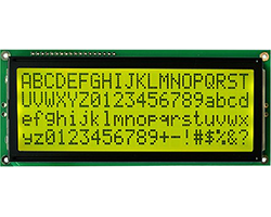晶漢達(JHD)社製キャラクタ液晶モジュール、表示形式:FSTNポジティブ、文字数 x 行数:20 x 4、内蔵コントローラ:SPLC780D、1/16、LEDバックライト:黄緑色、表示領域(VA):123.5x43.0 mm、外形寸法:146.0x55.0x13.5 mm、データシート、表示価格:1