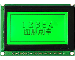 晶漢達(JHD)社製グラフィックス液晶モジュール、STN黄緑色ポジティブ、解像度:128 x 64、内蔵コントローラ:KS0108 OR EQUIV、1/64、LEDバックライト:黄緑色、表示領域(VA):62.0x32.5 mm、外形寸法:75.0x52.7x9.5 mm、データシート、表示価格:1