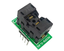 変換基板に実装済みICソケットMSOP8-0.65、変換先:2.54mmピッチ2x4ピンヘッダ(幅:300MIL)、適合チップパッケージ:MSOP-8、適合チップ寸法(mm):P=0.65、WB=3.0、WL=5.0、販売単位:1台、表記価格:1単位=1台