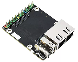ラズベリー パイCM4エクステンションボード、インターフェース:マイクロSDソケット、ファン接続1.0mmピッチ4ピンSHコネクタ、ETH0/ETH1 1GBイーサネットジャック、TYPE-A USBコネクタ、TYPE-C USBコネクタ、BOOTスライドスイッチ、RESETタクトスイッチ、基板寸法:50 x 68 mm、表記価格:1