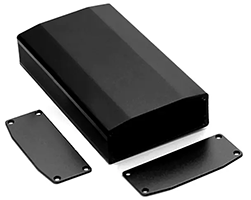 アルミ押出材ケース、端面寸法:64 x 25.5 mm、加工済み前後フタ・ねじ付き、色表記:S=シルバー、BK=ブラック、GD=ゴールド、R=レッド、長さ・色はバリエーションよりお選び頂けます、表記価格:1販売単位