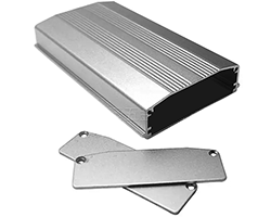アルミ押出材ケース、端面寸法:65 x 20 mm、加工済み前後フタ・ねじ付き、色表記:S=シルバー、BK=ブラック、GD=ゴールド、R=レッド、長さ・色はバリエーションよりお選び頂けます、表記価格:1販売単位