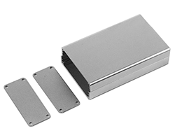 上下カバーがアルミ押出材ケース、端面寸法:50.5 x 20.5 mm、加工済み前後フタ・ねじ付き、色表記:S=シルバー、BK=ブラック、GD=ゴールド、R=レッド、長さ・色はバリエーションよりお選び頂けます、表記価格:1販売単位