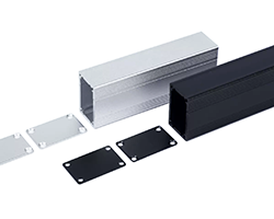 上下カバーがアルミ押出材ケース、端面寸法:25 x 40 mm、加工済み前後フタ・ねじ付き、色表記:S=シルバー、BK=ブラック、GD=ゴールド、R=レッド、長さ・色はバリエーションよりお選び頂けます、表記価格:1販売単位