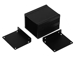 アルミ押出材ケース、端面寸法:50 x 25 mm、加工済み前後フタ・ねじ付き、色表記:S=シルバー、BK=ブラック、GD=ゴールド、R=レッド、GR=グレー、長さ・色はバリエーションよりお選び頂けます、表記価格:1販売単位