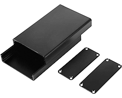 アルミ押出材ケース、端面寸法:71 x 25.5 mm、加工済み前後フタ・ねじ付き、色表記:S=シルバー、BK=ブラック、GD=ゴールド、R=レッド、長さ・色はバリエーションよりお選び頂けます、表記価格:1販売単位
