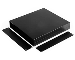 上下カバーがアルミ押出材ケース、端面寸法:180 x 34 mm、加工済み前後フタ・ねじ付き、色表記:S=シルバー、BK=ブラック、GD=ゴールド、R=レッド、GR=グレー、長さ・色はバリエーションよりお選び頂けます、表記価格:1販売単位