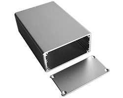 アルミ押出材ケース、端面寸法:69 x 34.5 mm、加工済み前後フタ・ねじ付き、色表記:S=シルバー、BK=ブラック、GD=ゴールド、R=レッド、GR=グレー、長さ・色はバリエーションよりお選び頂けます、表記価格:1販売単位