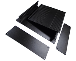 上下カバーがアルミ押出材ケース、端面寸法:159.7 x 46 mm、加工済み前後フタ・ねじ付き、色表記:S=シルバー、BK=ブラック、GD=ゴールド、R=レッド、GR=グレー、長さ・色はバリエーションよりお選び頂けます、表記価格:1販売単位