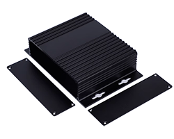 上下カバーがアルミ押出材ケース、端面寸法:147 x 36 mm、加工済み前後フタ・ねじ付き、色表記:S=シルバー、BK=ブラック、GD=ゴールド、R=レッド、GR=グレー、長さ・色はバリエーションよりお選び頂けます、表記価格:1販売単位