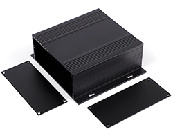 アルミ押出材ケース、端面寸法:133 x 46.6 mm、加工済み前後フタ・ねじ付き、色表記:S=シルバー、BK=ブラック、GD=ゴールド、R=レッド、GR=グレー、長さ・色はバリエーションよりお選び頂けます、表記価格:1販売単位