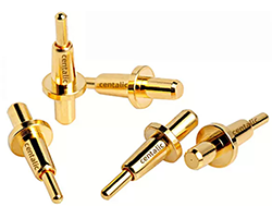 充電用スプリングテストプローブ、最小中心:5.95、フルストローク:2.15、定格ストローク:1.27、連続許容電流:5A、固有抵抗:< 30mΩ、スプリング圧:23gf(0.8 oz)/56gf(2.0 oz)、データシート、寸法単位:mm、表記価格:1販売単位