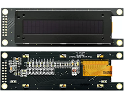 キャラクタOLED表示器モジュール、単色、2.93インチ、20 x 2、表示領域:73.52 x 11.52 mm、内蔵コントローラIC:SSD1311(US2066)、信号インターフェース:4/8ビットパラレル/SPI/I2C、接続インターフェース:2.54mmピッチスルーホール、動作電源:3.3Vと5Vの2モード、基板寸法:116 x 37 mm、表記価格:1販売単位