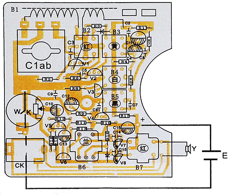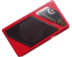低電圧8石スーパートランジスタラジオキット、簡易プラスチックケース付き、AMバンド、 出力:スピーカユニットとφ3.5オーディオジャック、動作電源:1.5V、単1電池1本(付属なし)、外形寸法:150×83×38 mm、表記価格:1